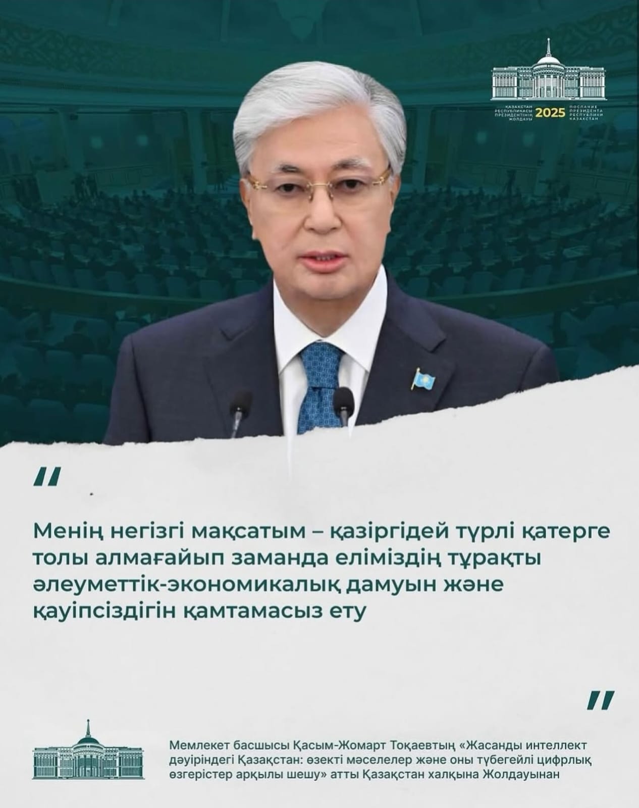Президент Қасым-Жомарт Тоқаев Қазақстан халқына жолдауын арнады. Жолдауда экономика, логистика және өзге де өзекті мәселелер қозғалып, жасанды интеллект көмегімен өзгерістер енгізу сөз болды. Бұған қоса, маңызды саяси реформа жасалатын болды.Жолдауда не айтылды?