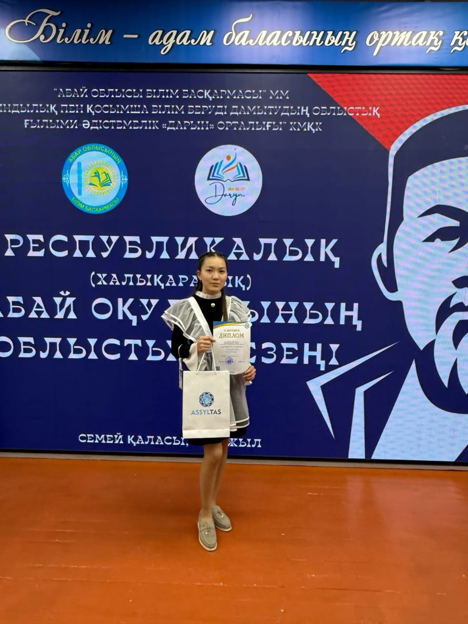 Облыстық "Абай оқулары" байқауына қатысып "Сөз өнеріндегі ұлы Абай бейнесі" бөлімі бойынша Серикказиева Айзере 2 - орын иеленді.